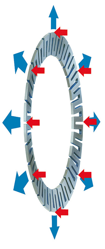 Basis des EDMAYR-RINGSPANN-Systems ist die RINGSPANN-Spannscheibe, ein flachkegeliger Ring aus gehärtetem Spezialfederstahl. Die charakteristische Schlitzung verleiht ihm eine besonders hohe Elastizität.